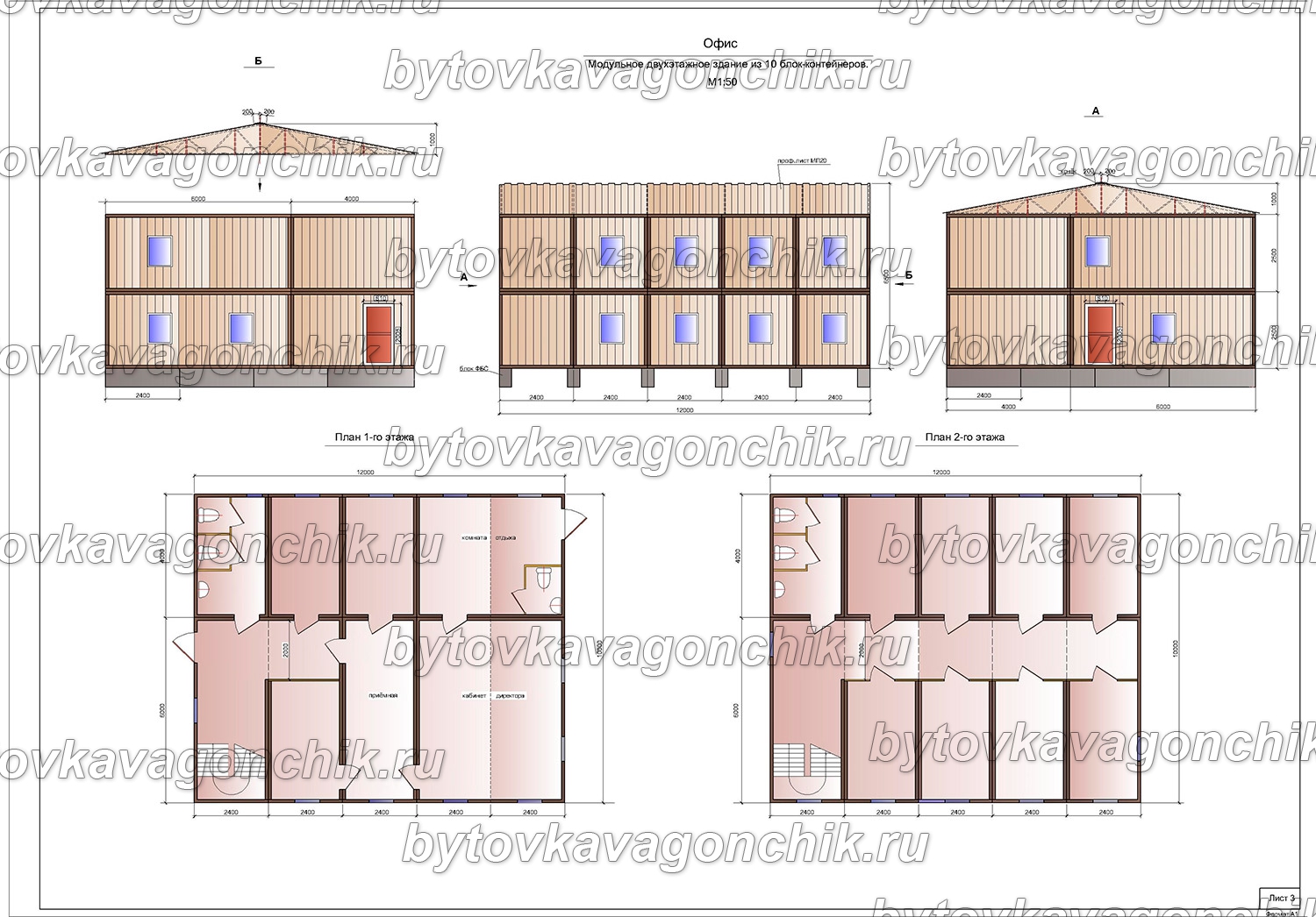 ГлавнаяПроекты готовых решенийМодульные здания → Административно-бытовой комплекс